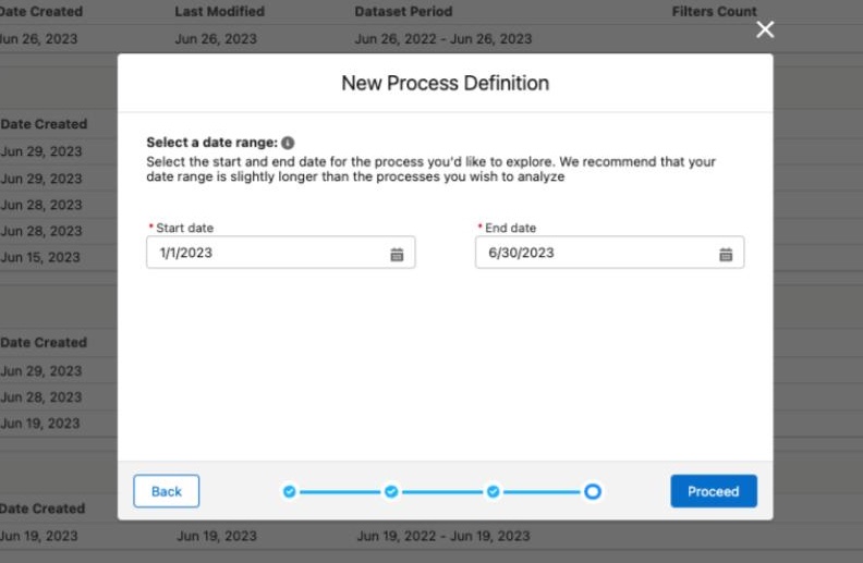 STEP 1: Select the object (e.g. opportunity)Hubbl Process Analytics runs on your Salesforce org and accesses data from the Opportunity History and Case History objects 1. Give the analysis project a name that you will be able to easily identify from others in the org.