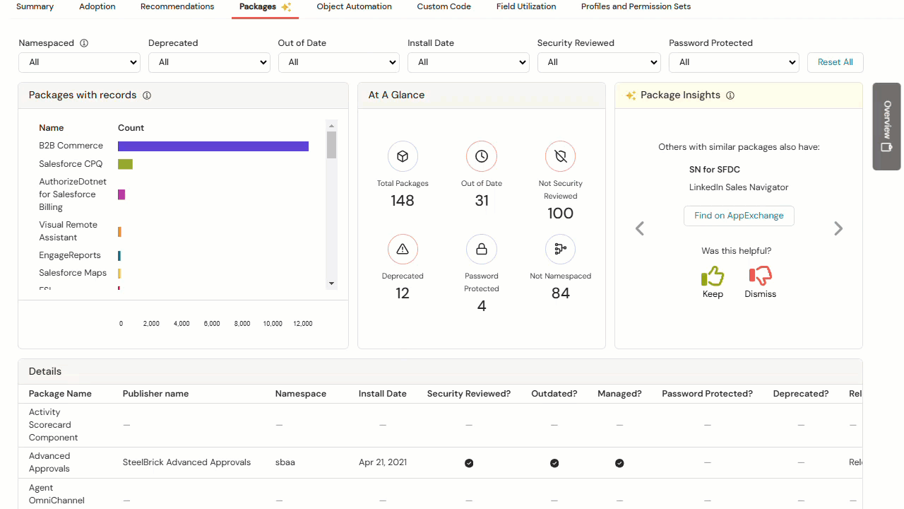 Hubbl Diagnostics introduces Package Insights, an AI-driven functionality designed to provide architect-level intelligence into your org. By analyzing metadata and clustering similar org setups, the platform offers recommendations tailored to your industry and business needs.